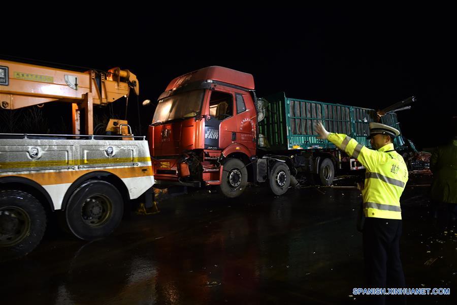 TAIYUAN, 22 nov (Xinhua) -- Un total de 17 personas murieron y otras 37 resultaron heridas después de que 56 vehículos chocaran en una autopista de Beijing-Kunming en el tramo que transcurre por la provincia septentrional china de Shanxi.
