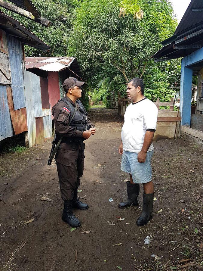 LIMON, noviembre 22, 2016 (Xinhua) -- Imagen cedida por la Presidencia de Costa Rica, de un elemento de la Fuerza Pública conversando con un hombre mientras participa en labores de evacuación en la provincia de Limón, Costa Rica, el 22 de noviembre de 2016. La Comisión Nacional de Emergencias de Costa Rica declaró el martes alerta máxima ante la cercanía del huracán Otto, el cual se encuentra a poco más de 400 kilómetros de la costa de la provincia de Limón, en el Caribe. La alerta roja decretada incluye comunidades de la provincia de Limón y la zona norte del país, las cuales pueden verse directamente afectadas una vez que Otto ingrese a territorio costarricense entre ma?ana miércoles y el próximo jueves. (Xinhua/Presidencia de Costa Rica)