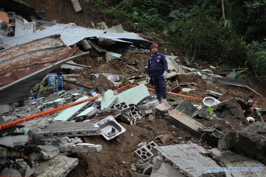 CIUDAD DE PANAMA, noviembre 23, 2016 (Xinhua) -- Un rescatista participa en labores de búsqueda en el sitio de un deslizamiento de tierra en el sector Nueva Libia, en la Ciudad de Panamá, capital de Panamá, el 23 de noviembre de 2016. La actual trayectoria del huracán "Otto" amenaza una franja de América Central donde se sitúan Nicaragua, Costa Rica y Panamá, a la espera de que impacte el jueves tierras caribe?as e ingrese a territorio nicaragüense. En Panamá, los efectos de "Otto" ya causaron al menos tres muertos la víspera, quienes perecieron a causa de un deslizamiento de tierra y por la caída de un árbol, además de que nueve personas resultaron atrapadas por el derrumbe de cuatro casas, y se han suspendido las clases, especialmente en las zona que se espera resulten más afectadas tras el huracán. (Xinhua/Mauricio Valenzuela)