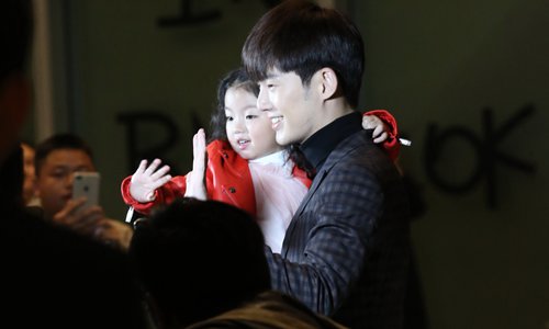 La "hija" Arale, cuyo verdadero nombre es Cui Yahan y el "padre" Dong Li, un atleta olímpico, saludan a sus fans en un evento celebrado en Shanghai el 9 de noviembre. Foto: IC