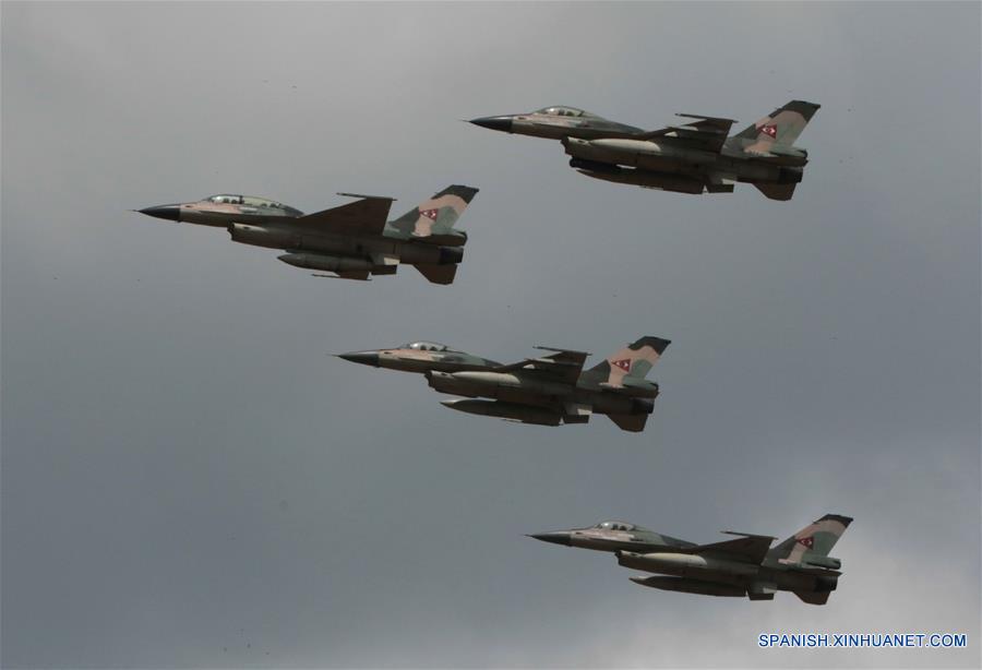 ARAGUA, noviembre 27, 2016 (Xinhua) -- Aeronaves vuelan durante un desfile aéreo y parada militar con motivo del 96 aniversario de la Aviación Militar Bolivariana, en Maracay, en el estado Aragua, Venezuela, el 27 de noviembre de 2016. El presidente de Venezuela, Nicolás Maduro, aseguró el domingo que no permitirá que "nadie", refiriéndose al sector opositor, se levante de la mesa de diálogo instalada el pasado 30 de octubre para buscar una solución a la crisis del país. (Xinhua/Prensa Presidencial/AVN)