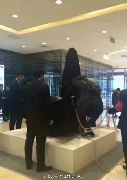 Beijing, 30/11/2016 (El Pueblo en Línea) - Es difícil para un centro comercial convivir frente al inmueble de la Comisión Reguladora de Valores de China. Otra vez han tenido que remover otra escultura ornamental de su entrada. Antes, ya habían tenido que guardarse las figuras de dos osos supuestamente porque uno de ellos elevaba demasiado su dedo del medio. Esta vez la controversial figura fue un hermoso cisne negro.