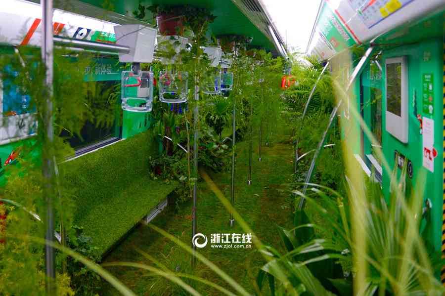 Un vagón del metro de Hangzhou se convierte en un hermoso bosque (3)