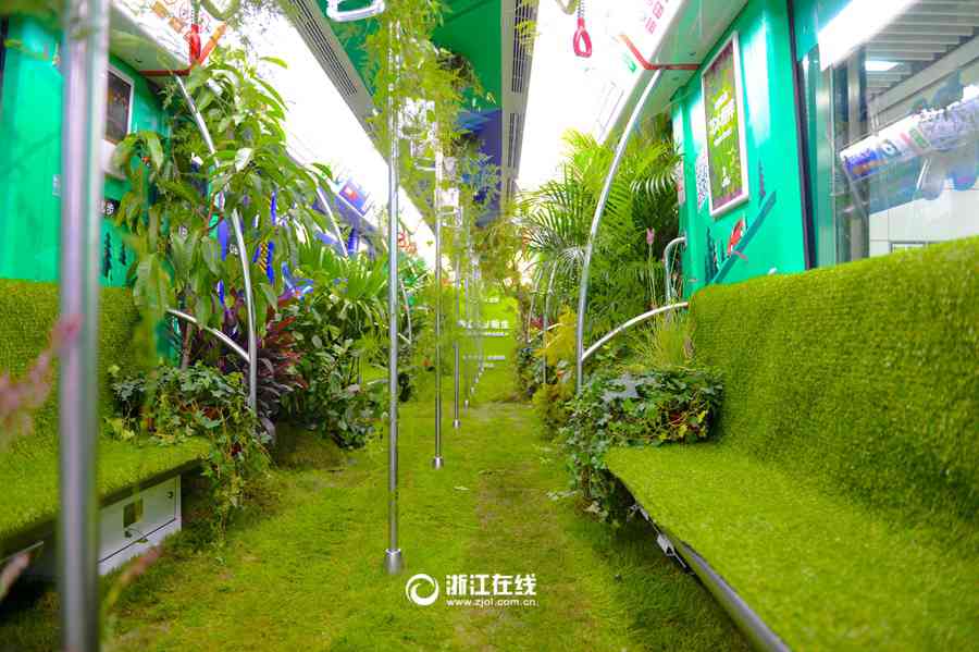 Un vagón del metro de Hangzhou se convierte en un hermoso bosque
