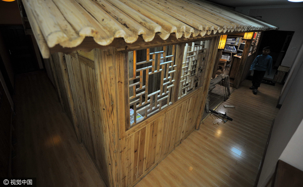 La casa que le costó poco dinero fue construida dentro de su propio apartamento en Guiyang.