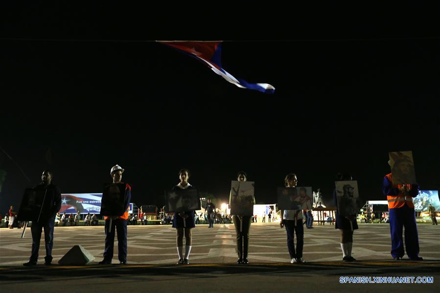 SANTA CLARA, noviembre 30, 2016 (Xinhua) -- Estudiantes sostienen carteles mientras esperan en el Mausoleo donde reposan los restos de Ernesto "Che" Guevara, previo al paso de la caravana que transporta las cenizas del líder cubano, Fidel Castro, en la Plaza Ernesto "Che" Guevara, en la provincia de Santa Clara, Cuba, el 30 de noviembre de 2016. El cortejo fúnebre con las cenizas del líder cubano Fidel Castro inició el miércoles su recorrido desde La Habana hacia la ciudad oriental de Santiago de Cuba, que rememora la histórica Caravana de la Libertad que protagonizó el exmandatario en 1959, pero en sentido inverso. (Xinhua/David de la Paz)