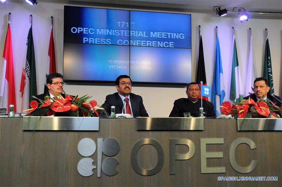 VIENA, 30 nov (Xinhua) -- La Organización de Países Exportadores de Petróleo (OPEP) decidió hoy reducir su producción de petróleo en 1,2 millones de barriles diarios y estableció un tope de producción de petróleo de 32,5 millones de barriles al día.