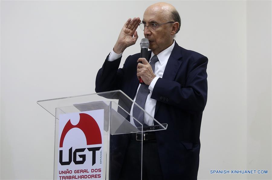 El ministro de Hacienda de Brasil, Henrique Meirelles, participa durante una conferencia con sindicalistas acerca del plan de reforma del sistema de pensiones, en Sao Paulo, Brasil, el 6 de diciembre de 2016. El presidente de Brasil, Michel Temer, presentó el lunes a los líderes del Congreso su propuesta de reforma al sistema de pensiones para elevar la edad mínima de jubilación a 65 a?os. Henrique Meirelles, dijo que la reforma de las pensiones "no es una cuestión de deseo, sino una necesidad". Más importante que la edad a la que se retirará a la persona es la seguridad de que recibirá su jubilación". (Xingua/Rahel Patrasso)