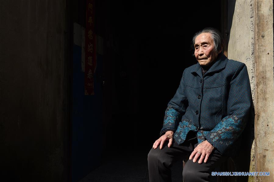 NANJING, diciembre 11, 2016 (Xinhua) -- Imagen del 3 de noviembre de 2016, de Zhu Sizi tomando el sol en su casa. Zhu Sizi, nacida el 3 de junio de 1920, sufrió la invasión de las tropas japonesas en 1937. Todas sus casas fueron quemadas. Ella y su familia sobrevivieron por esconderse dentro de una madriguera debajo de un jardín detrás de su casa. Las tropas japonesas ocuparon Nanjing, en el este de China, el 13 de diciembre de 1937, y comenzaron una masacre de seis semanas. Los registros chinos muestran que más de 300,000 personas, no sólo soldados desarmados sino también civiles, fueron brutalmente asesinadas y miles de mujeres fueron violadas. En los últimos 79 a?os, el número de sobrevivientes ha disminuido. Después de que Zhang Fuzhi, de 89 a?os, falleciera el 26 de noviembre de 2016, el número de sobrevivientes registrados se redujo a 108. Con heridas que no se pueden sanar, y el trágico recuerdo del sufrimiento, los sobrevivientes son los testigos de la masacre. (Xinhua/Han Yuqing)