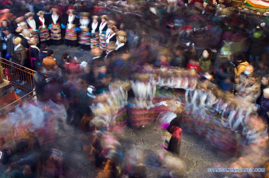 LHASA, diciembre 13, 2016 (Xinhua) -- Personas celebran el Día del Hada en el Templo Jokhang en Lhasa, capital de la región autónoma del Tíbet, en el suroeste de China, el 13 de diciembre de 2016. El Día del Hada se celebra el día 15 del mes 10 del calendario tibetano. En este día, los tibetanos celebran para conmemorar a Buddha Aleanterre Brahm. (Xinhua/Purbu Zhaxi)