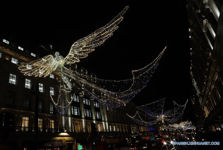 LONDRES, diciembre 13, 2016 (Xinhua) -- Luces navide?as permanecen encendidas en una calle del centro de Londres, capital de Reino Unido, el 13 de diciembre de 2016. (Xinhua/Han Yan)