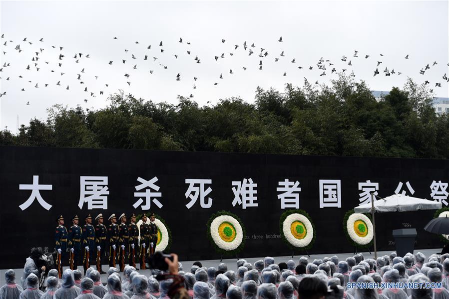 NANJING, diciembre 13, 2016 (Xinhua) -- Palomas vuelan durante una ceremonia memorial estatal para celebrar el Día Nacional Conmemorativo por las Víctimas de la Masacre de Nanjing, en el Salón Memorial de las Víctimas de la Masacre de Nanjing por los Invasores Japoneses, en Nanjing, en la provincia de Jiangsu, en el este de China, el 13 de diciembre de 2016. (Xinhua/Sun Can)