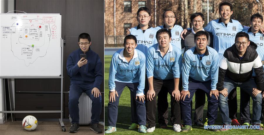 Liu Zhongjin buscó equipo de fútbol que se encontraba cerca de su vivienda. Liu tomó foto con miembros del equipo tras un partido en el distrito Haidian, oeste de Beijing. (Xinhua/Li Jing)