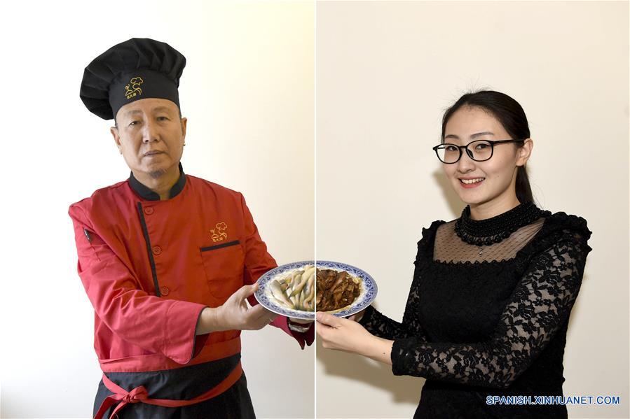El cocinero Gu Xuezhi mostró el plato que la se?ora Dong Anqi había ordenado por Wechat. A la derecha, Dong mostró el plato con satisfacción en la ciudad de Tianjin, norte de China. (Xinhua/Lianyi)