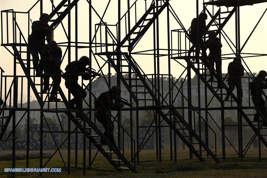 HEFEI, diciembre 16, 2016 (Xinhua) -- Miembros del equipo de Armas y Tácticas Especiales (SWAT, por sus siglas en inglés) participan en un entrenamiento, en Hefei, capital de la provincia de Anhui, en el este de China, el 16 de diciembre de 2016. El equipo SWAT local realizó un entrenamiento de diez días de duración desde el 10 de diciembre para menjorar sus habilidades tácticas. (Xinhua/Guo Chen)
