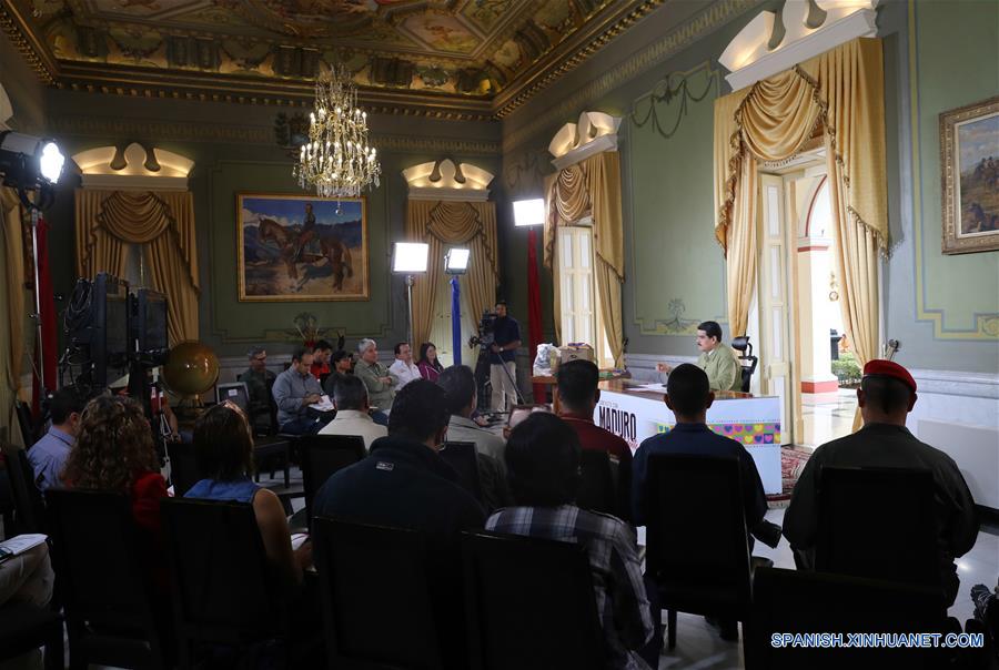 CARACAS, diciembre 18, 2016 (Xinhua) -- Imagen cedida por la Presidencia de Venezuela, del presidente venezolano, Nicolás Maduro (d-atrás), participando durante su programa "Contacto con Maduro", en Caracas, capital de Venezuela, el 18 de diciembre de 2016. De acuerdo con información de la prensa local, Maduro habló durante el programa acerca de la llegada del nuevo billete de 500 bolívares. (Xinhua/Presidencia de Venezuela)