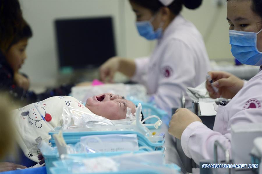 SHANDONG, diciembre 20, 2016 (Xinhua) -- Trabajadores médicos suministran tratamiento a los bebés con enfermendades respiratorias en un hospital en Jinan, capital de la provincia de Shandong, en el este de China, el 20 de diciembre de 2016. El pesado esmog persistió el martes en Beijing, Tianjin y las provincias de Hebei, Henan y Shandong. Más de 20 ciudades han emitido alertas rojas por el esmog. (Xinhua/Zhao Xiaoming)