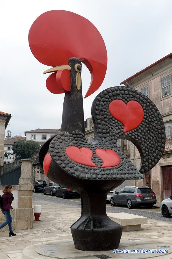 BARCELOS, diciembre 20, 2016 (Xinhua) -- Imagen tomada el 10 de diciembre de una vista el Gallo de Barcelos, en Barcelos, en el norte de Portugal. El enorme Gallo de Barcelos ha sido enviado a China y este será exhibido en Beijing y Shanghai para celebrar el próximo A?o del Gallo en China. El Gallo de Barcelos es uno de los emblemas más comunes de Portugal, que representa la justicia, la igualdad y la bondad. (Xinhua/Zhang Liyun)