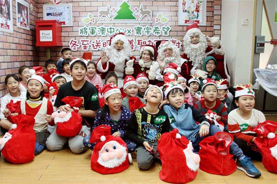 HONG KONG, diciembre 21, 2016 (Xinhua) -- "Santa Clauses" posan para una fotografía grupal con ni?os en un evento llevado a cabo para celebrar la próxima Navidad, en una comunidad en Hong Kong, en el sur de China, el 21 de diciembre de 2016. (Xinhua/Wang Xi)