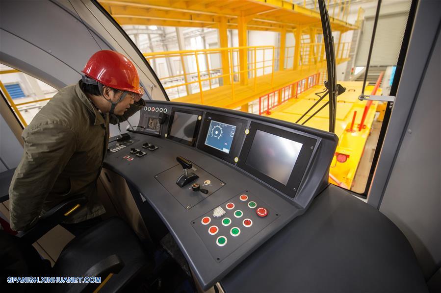 BEIJING, diciembre 25, 2016 (Xinhua) -- Vista del interior del primer tren de levitación magnética de velocidad media-baja, Línea S1, de Beijing, en la ciudad de Beijing, capital de China, el 25 de diciembre de 2016. Se espera que la La Línea S1, que conecta al distrito oeste de Mentougou de la ciudad, con la estación de metro de Pingguoyuan en el distrito de Shijingshan, comience a funcionar en 2017. Con una velocidad máxima de 100 kilómetros por hora, el tren parará en ocho estaciones, y transportará a cerca de 1,302 pasajeros cada vez. (Xinhua/Luo Xiaoguang)