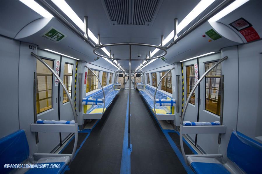 BEIJING, diciembre 25, 2016 (Xinhua) -- Vista del interior del primer tren de levitación magnética de velocidad media-baja, Línea S1, de Beijing, en la ciudad de Beijing, capital de China, el 25 de diciembre de 2016. Se espera que la La Línea S1, que conecta al distrito oeste de Mentougou de la ciudad, con la estación de metro de Pingguoyuan en el distrito de Shijingshan, comience a funcionar en 2017. Con una velocidad máxima de 100 kilómetros por hora, el tren parará en ocho estaciones, y transportará a cerca de 1,302 pasajeros cada vez. (Xinhua/Luo Xiaoguang)