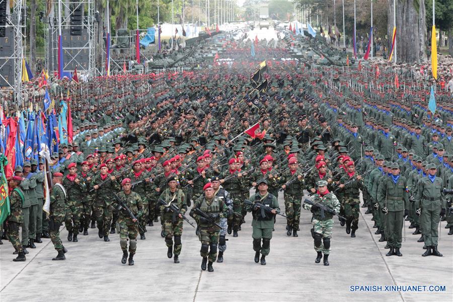 CARABOBO, diciembre 28, 2016 (Xinhua) -- Imagen cedida por la Presidencia de Venezuela, de soldados participando durante un evento de fin de a?o encabezado por el presidente venezolano, Nicolás Maduro, en el Campo Carabobo, en el estado Carabobo, Venezuela, el 28 de diciembre de 2016. De acuerdo con información de la prensa local, el presidente venezolano, Nicolás Maduro, inauguró el miércoles en el marco de su mensaje de salutación de fin de a?o para los integrantes de la Fuerza Armada Nacional Bolivariana (FANB), el Batallón "24 de junio" de la Guardia de Honor Presidencial, el cual cuenta con 800 integrantes de la guardia de honor así como áreas de recreación y entrenamiento militar, canchas deportivas y anfiteatro. (Xinhua/Presidencia de Venezuela)