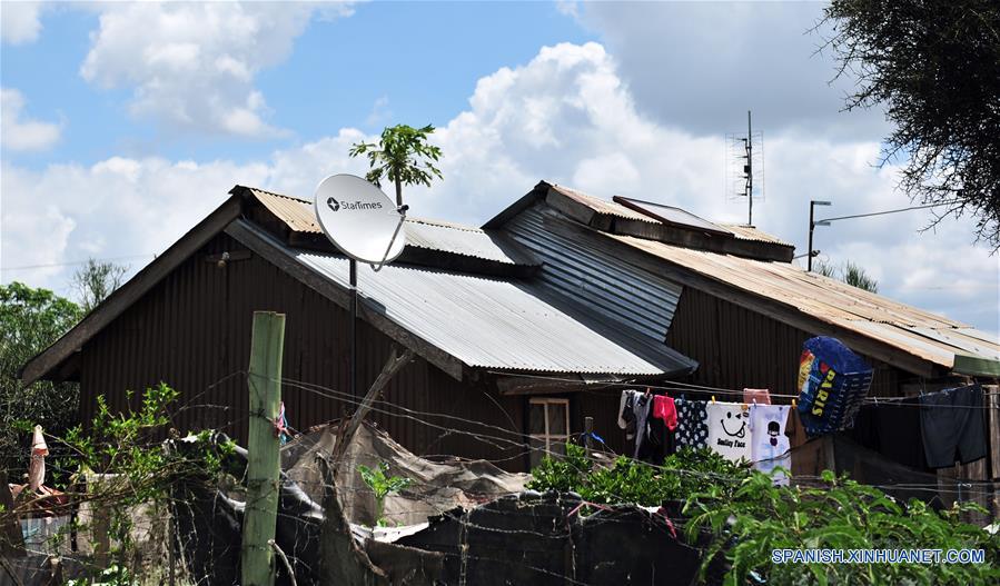 La foto muestra una casa en una aldea lejana de Kenia el 30 de noviembre, la cual está equipada con televisión digital instalada por una empresa china.(Xinhua/Li Baishun)