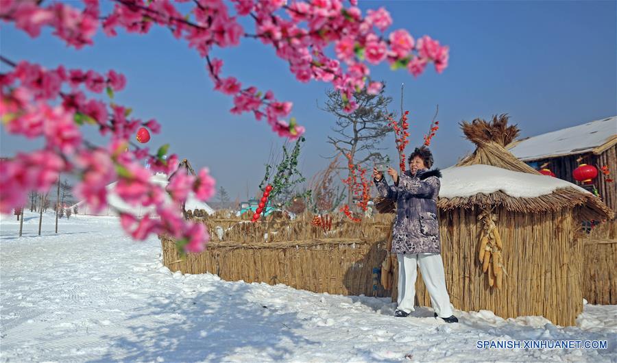 Una turista toma fotografías durante el 2 Festival Internacional de Hielo, Nieve y Aguas Termales de Jinzhou, en Jinzhou, provincia de Liaoning, en el noreste de China, el 3 de enero de 2017. (Xinhua/Yang Qing)