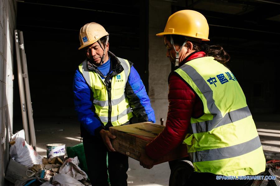 BEIJING, enero 3, 2017 (Xinhua) -- Imagen del 30 de diciembre de 2016 de Huang Jingwen (i) y Yang Yingzhi (d), trabajando en un sitio de construcción, en Beijing, capital de China. Huang Jingwen y Yang Yingzhi son de la Prefectura Autónoma Honghe Hani y Yi de la provincia de Yunnan, en el suroeste de China y actualmente trabajan en un proyecto de costrucción en Beijing. Como un regalo de A?o Nuevo, un estudio fotográfico en Beijing tomó fotografías gratis para la pareja que celebrará el 30 aniversario de su matrimonio en 2017. (Xinhua/Zhang Cheng)