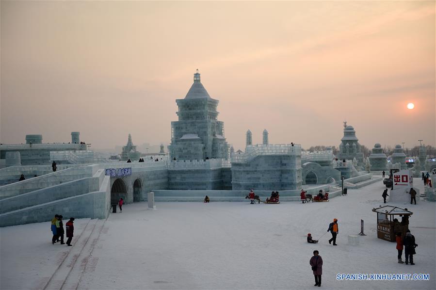 HARBIN, enero 3, 2017 (Xinhua) -- Personas visitan el Mundo de Hielo y Nieve de Harbin, en Harbin, capital de la provincia de Heilongjiang, en el noreste de China, el 3 de enero de 2017. (Xinhua/Wang Jianwei)