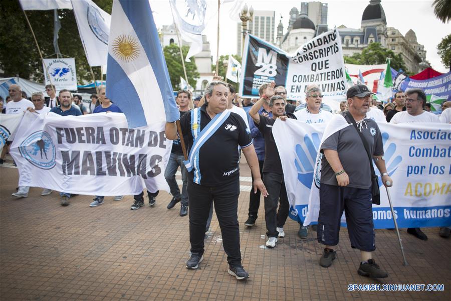 BUENOS AIRES, enero 3, 2017 (Xinhua) -- Personas participan en una "Ronda por la Soberanía", en Buenos Aires, Argentina, el 3 de enero de 2017. De acuerdo con información de la prensa local, veteranos que combatieron en las Islas Malvinas y organizaciones políticas y de derechos humanos organizaron la protesta en el marco del 184 aniversario de la ocupación británica de las Islas Malvinas. (Xinhua/Martín Zabala)