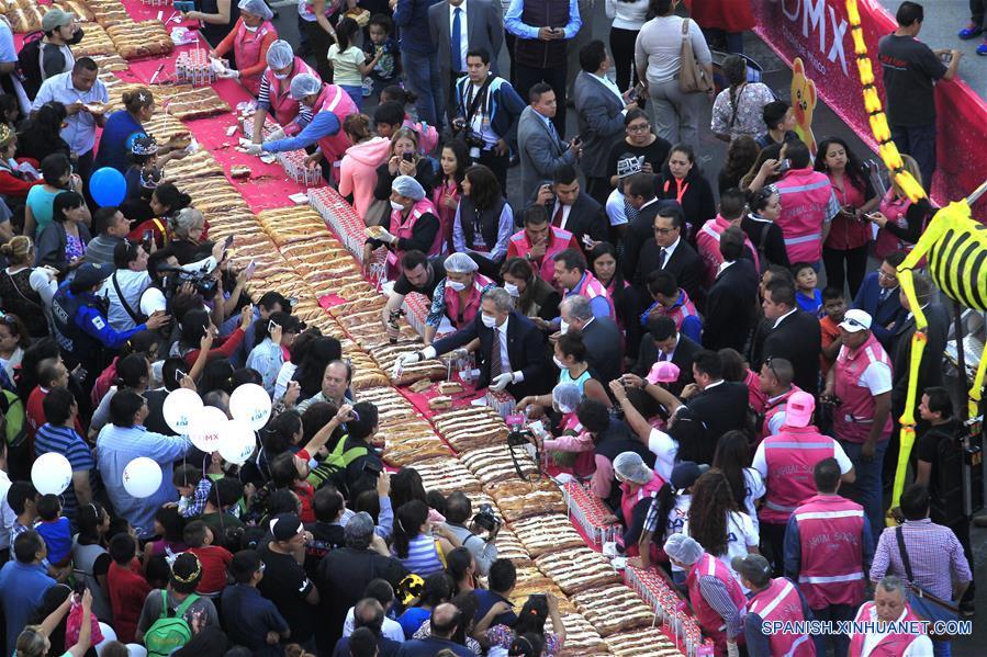 CIUDAD DE MEXICO, enero 5, 2017 (Xinhua) -- Residentes se forman para recibir un pedazo de la Mega Rosca de Reyes, en el Zócalo de la Ciudad de México, capital de México, el 5 de enero de 2017. De acuerdo con información de la prensa local, la rosca fue elaborada por artesanos de la Cámara de la Industria Panificadora con más de 1,400 metros de longitud, y será repartida en más de 200,000 rebanadas aproximadamente. (Xinhua/Str)