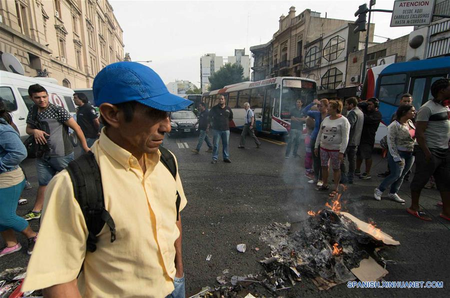 Manteros (vendedores ambulantes) participan en el corte parcial durante una protesta la avenida Pueyrredón, en la zona donde esta madrugada se montó un fuerte operativo policial para desalojarlos, en el barrio porte?o de Once, en Buenos Aires, Argentina, el 10 de enero de 2017. Al menos dos manteros detenidos, dos heridos leves de la policía local y un periodista lesionado fue el saldo que arrojó el operativo policial llevado a cabo el mediodía del martes en las proximidades de la estación Miserere, en el barrio porte?o de Onve, para dispersar una protesta de vendedores callejeros en reacción a un desalojo de más de 2,000 puestos de venta ilegal de mercadería, informaron fuentes policiales de la ciudad. Tras los incidentes habrá una reunión entre los manteros y el Gobierno de la Ciudad, de acuerdo con información de la prensa local. (Xinhua/Carlos Brigo/TELAM)