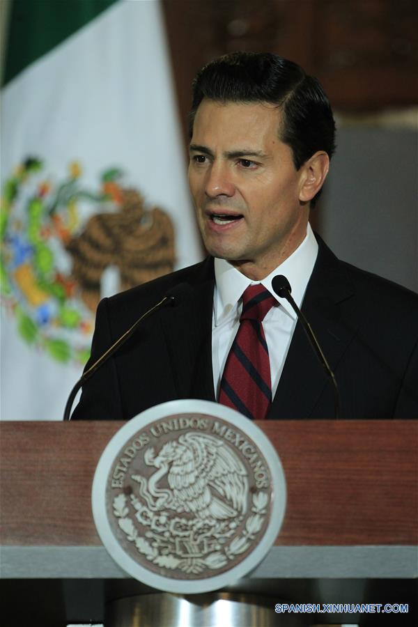 CIUDAD DE MEXICO, enero 11, 2017 (Xinhua) -- El presidente mexicano, Enrique Pe?a Nieto, pronuncia un discurso durante la XXVIII Reunión con Embajadores y Cónsules de México, en el Palacio Nacional, en la Ciudad de México, capital de México, el 11 de enero de 2017. De acuerdo con información de la prensa local, Pe?a Nieto aseguró que México no pagará por ningún muro en su frontera con Estados Unidos de América, y rechazó cualquier intento de influir en las decisiones sobre inversión de las empresas. (Xinhua/Str)