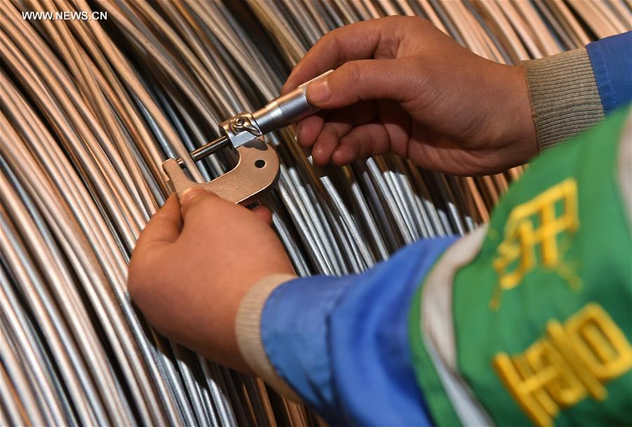 Taiyuan, 13/01/2017 (El Pueblo en Línea) - Un trabajador mide componentes de acero para las puntas de bolígrafos en Taiyuan Iron and Steel (Grupo), o TISCO, en Taiyuan, provincia de Shanxi, el 10 de enero de 2017. China, el mayor fabricante mundial de bolígrafos, Poniendo fin a una larga dependencia a las puntas importadas, TISCO dijo que ya domina la tecnología para producir las puntas de acero de los bolígrafos, después de cinco a?os de estudio. [Foto / Xinhua]
