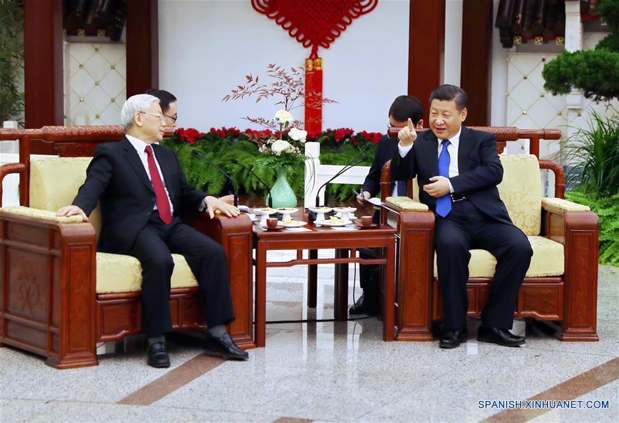 Xi Jinping, secretario general del Comité Central del Partido Comunista de China (PCCh), sostuvo conversaciones con el secretario general del Comité Central del Partido Comunista de Vietnam (PCV), Nguyen Phu Trong, en Beijing. (Xinhua/Ju Peng)