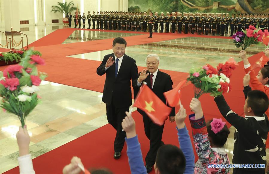 Xi Jinping, secretario general del Comité Central del Partido Comunista de China (PCCh), sostuvo conversaciones con el secretario general del Comité Central del Partido Comunista de Vietnam (PCV), Nguyen Phu Trong, en el Gran Palacio del Pueblo.