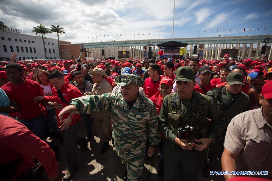 El primer vicepresidente del Partido Socialista Unido de Venezuela, Diosdado Cabello (c), participa en el Ejercicio de Acción Integral Antiimperialista Zamora 200, en Caracas, capital de Venezuela, el 14 de enero de 2017. Este fin de semana se lleva a cabo el Ejercicio de Acción Integral Antiimperialista Zamora 200, en el que participarán más de 100,000 hombres y mujeres de los cuatro componentes de la Fuerza Armada Nacional Bolivariana (FANB) del país, informó el segundo comandante del Comando Estratégico Operacional (CEO), de la FANB, Remigio Ceballos, explicando que esta acción cívico-militar tiene su proceso de planificación desde el 28 de diciembre de 2016, por instrucciones del presidente venezolano, Nicolás Maduro, y su objetivo estratégico es preparar al pueblo en la defensa integral del país, de acuerdo con información de la prensa local. (Xinhua/Str)