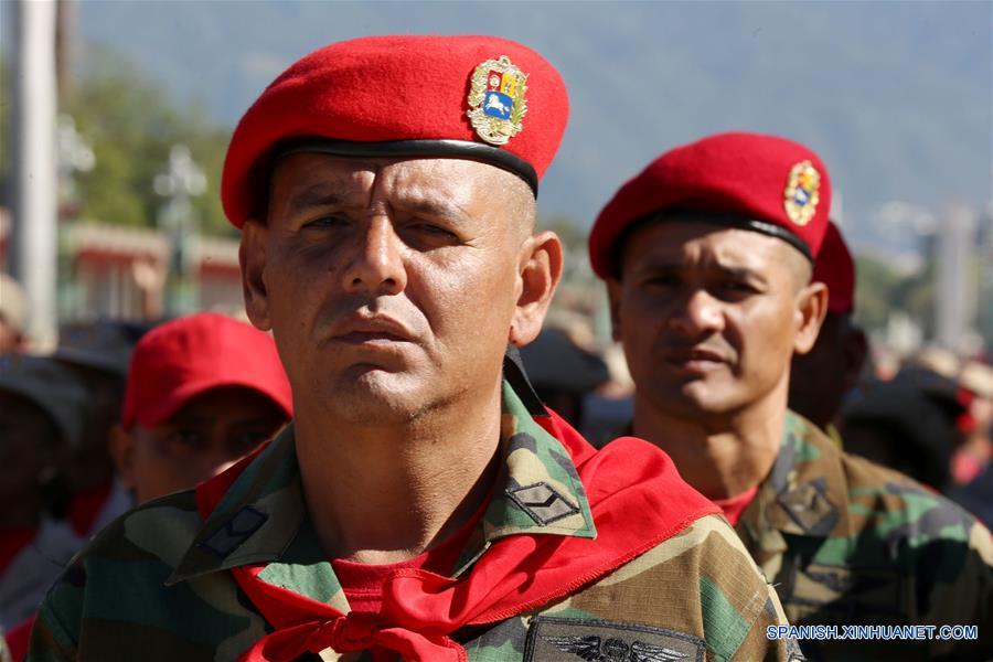 Efectivos militares participan en el Ejercicio de Acción Integral Antiimperialista Zamora 200, en el Patio de la Academia Militar del Fuerte Tiuna, en Caracas, capital de Venezuela, el 14 de enero de 2017. Este fin de semana se llevará a cabo el Ejercicio de Acción Integral Antiimperialista Zamora 200, en el que participarán más de 100,000 hombres y mujeres de los cuatro componentes de la Fuerza Armada Nacional Bolivariana (FANB) del país, informó el segundo comandante del Comando Estratégico Operacional (CEO), de la FANB, Remigio Ceballos, explicando que esta acción cívico-militar tiene su proceso de planificación desde el 28 de diciembre de 2016, por instrucciones del presidente venezolano, Nicolás Maduro, y su objetivo estratégico es preparar al pueblo en la defensa integral del país, de acuerdo con información de la prensa local. (Xinhua/Gregorio Terán/AVN)