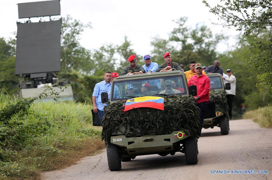 Imagen cedida por la Presidencia de Venezuela, del presidente venezolano, Nicolás Maduro (d-frente), asistiendo al Ejercicio de Acción Integral Antiimperialista Zamora 200, en las instalaciones del Fuerte Guaicaipuro, en el estado Miranda, Venezuela, el 14 de enero de 2017. Este fin de semana se lleva a cabo el Ejercicio de Acción Integral Antiimperialista Zamora 200, en el que participarán más de 100,000 hombres y mujeres de los cuatro componentes de la Fuerza Armada Nacional Bolivariana (FANB) del país, informó el segundo comandante del Comando Estratégico Operacional (CEO), de la FANB, Remigio Ceballos, explicando que esta acción cívico-militar tiene su proceso de planificación desde el 28 de diciembre de 2016, por instrucciones del presidente venezolano, Nicolás Maduro, y su objetivo estratégico es preparar al pueblo en la defensa integral del país, de acuerdo con información de la prensa local. (Xinhua/Presidencia de Venezuela)