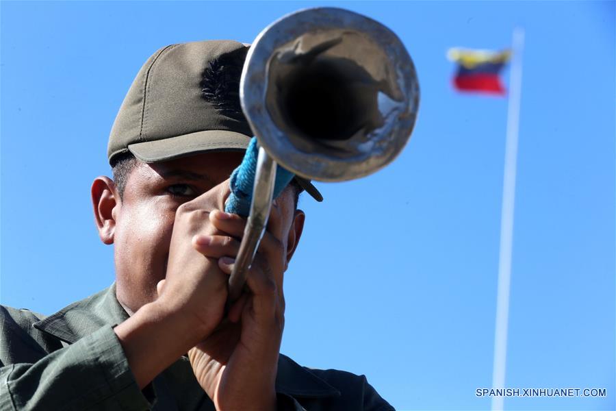 Un efetivo militar participa en el Ejercicio de Acción Integral Antiimperialista Zamora 200, en el Patio de la Academia Militar del Fuerte Tiuna, en Caracas, capital de Venezuela, el 14 de enero de 2017. Este fin de semana se llevará a cabo el Ejercicio de Acción Integral Antiimperialista Zamora 200, en el que participarán más de 100,000 hombres y mujeres de los cuatro componentes de la Fuerza Armada Nacional Bolivariana (FANB) del país, informó el segundo comandante del Comando Estratégico Operacional (CEO), de la FANB, Remigio Ceballos, explicando que esta acción cívico-militar tiene su proceso de planificación desde el 28 de diciembre de 2016, por instrucciones del presidente venezolano, Nicolás Maduro, y su objetivo estratégico es preparar al pueblo en la defensa integral del país, de acuerdo con información de la prensa local. (Xinhua/Gregorio Terán/AVN)