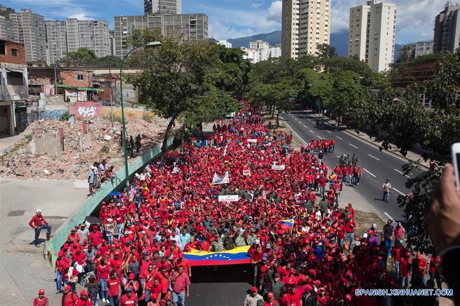 Simpatizantes del presidente venezolano, Nicolas Maduro, participan en el Ejercicio de Acción Integral Antiimperialista Zamora 200, en Caracas, capital de Venezuela, el 14 de enero de 2017. Este fin de semana se lleva a cabo el Ejercicio de Acción Integral Antiimperialista Zamora 200, en el que participarán más de 100,000 hombres y mujeres de los cuatro componentes de la Fuerza Armada Nacional Bolivariana (FANB) del país, informó el segundo comandante del Comando Estratégico Operacional (CEO), de la FANB, Remigio Ceballos, explicando que esta acción cívico-militar tiene su proceso de planificación desde el 28 de diciembre de 2016, por instrucciones del presidente venezolano, Nicolás Maduro, y su objetivo estratégico es preparar al pueblo en la defensa integral del país, de acuerdo con información de la prensa local. (Xinhua/Str)