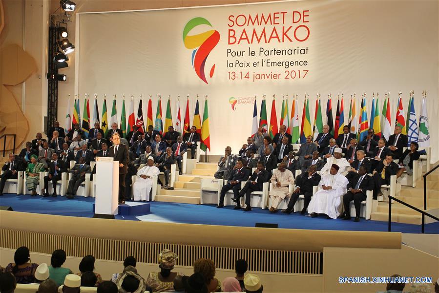 BAMAKO, enero 14, 2017 (Xinhua) -- El presidente de Francia, Francois Hollande, pronuncia un discurso durante la ceremonia de inauguración de la XXVII Cumbre Africa-Francia, en Bamako, Mali, el 14 de enero de 2017. Líderes africanos y franceses comenzaron una cumbre el sábado en Bamako sobre máxima seguridad, enfocándose en temas clave incluyendo la paz y la seguridad, el clima y la economía. (Xinhua/Diop)