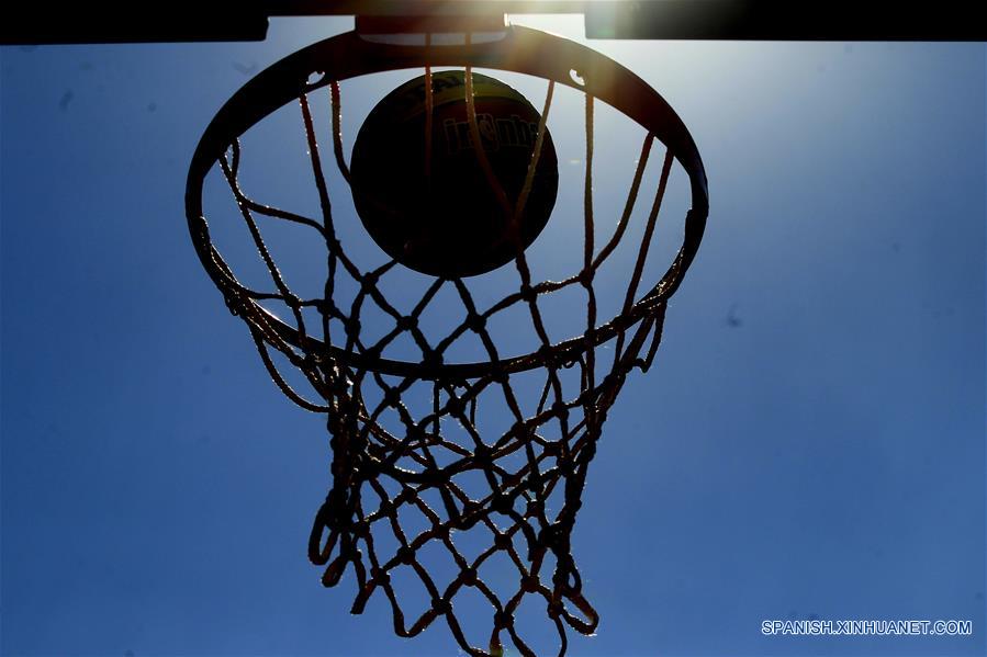 Vista de un balón de baloncesto entrando a la canasta durante la inauguración de cuatro canchas de baloncesto rehabilitadas en Ciudad Deportiva de Magdalena Mixhuca en la Ciudad de México, capital de México, el 14 de enero de 2017. De acuerdo con información de la prensa local, las canchas fueron rehabilitadas con apoyo del programa de la Asociación Nacional de Baloncesto (NBA, por sus siglas en inglés) estadounidense, NBA Cares Legacy. (Xinhua/Str)