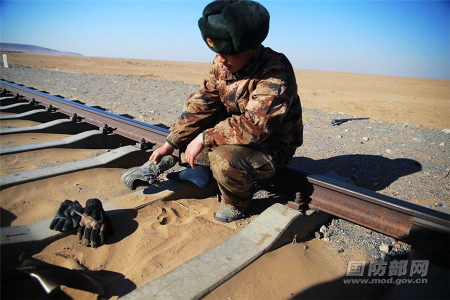 El histórico ferrocarril tiene aproximadamente 300 kilómetros de longitud y 36 paradas. Su servicio cubre las necesidades diarias de soldados y oficiales del Ejército Popular de Liberación (EPL), así como el imprescindible transporte de cohetes y satélites hacia el Centro de Lanzamiento de Jiuquan. Una sección del ferrocarril está situada justo en la entrada del desierto, donde el ambiente natural es muy árido. A pesar de las duras condiciones, durante 59 a?os los valerosos soldados y oficiales del EPL han cumplido su misión a cabalidad.