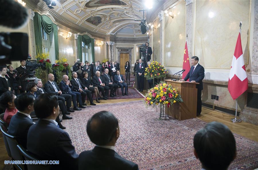 BERNA, enero 15, 2017 (Xinhua) -- El presidente de China, Xi Jinping, pronuncia un discurso durante una ceremonia de bienvenida llevada a cabo por todos los miembros del Consejo Federal Suizo en Berna, Suiza, el 15 de enero de 2017. (Xinhua/Xie Huanchi)