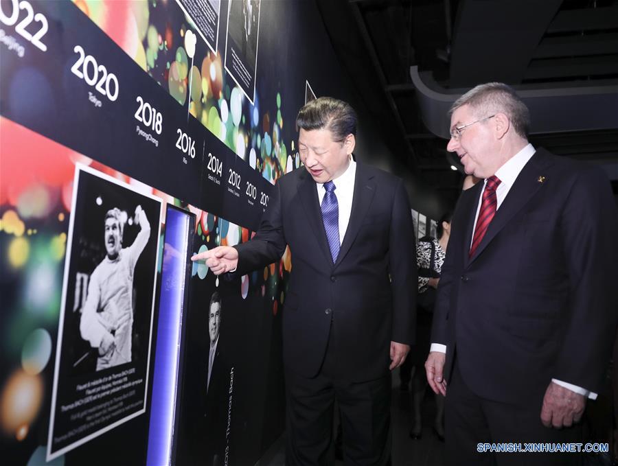 El presidente de China, Xi Jinping, se reunió hoy en Lausana con el presidente del Comité Olímpico Internacional (COI), Thomas Bach. (Xinhua/Lan Hongguang)