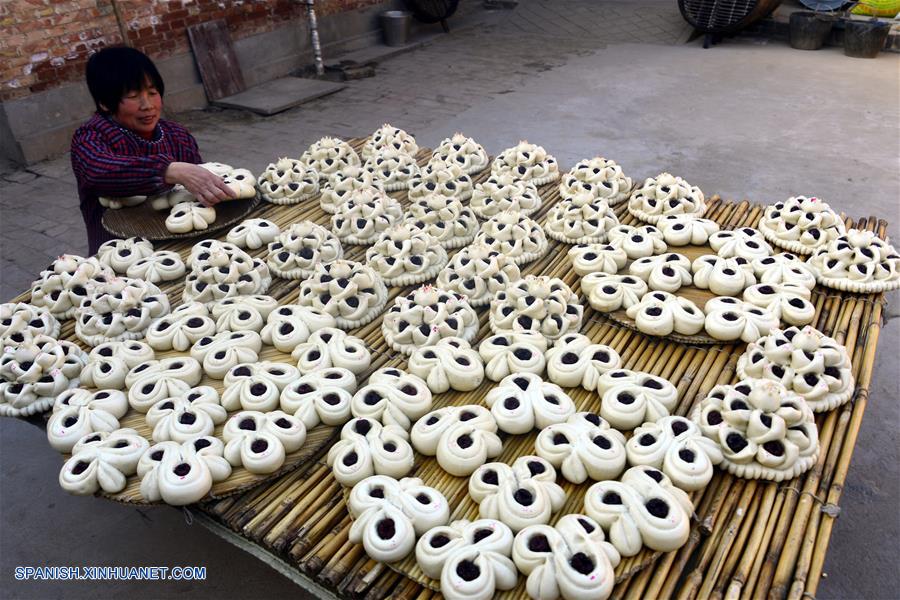 SHANDONG, enero 20, 2017 (Xinhua) -- Yuan Xiaorong organiza las tartas de jujube recién elaboradas, en la villa de Ditouyuan del condado de Chiping, provincia de Shandong, en el este de China, el 20 de enero de 2017. Los residentes de esta villa tienen la tradición de elaborar bollos al vapor con distintos patrones para saludar al Festival de Primavera. (Xinhua/Zhao Yuguo)