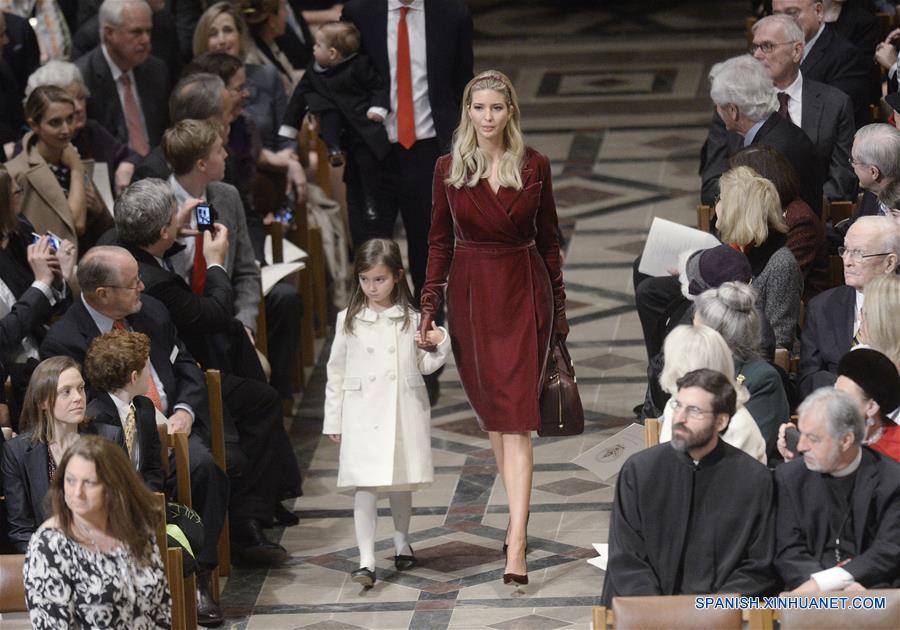 Miembros de la familia del presidente de Estados Unidos de América, Donald Trump, asisten a un servicio religioso en la Catedral Nacional, en Washington D.C., Estados Unidos de América, el 21 de enero de 2017. El presidente estadounidese, Donald Trump, comenzó su primera jornada completa en funciones en un servicio religioso, el último ritual de la transición antes de dedicarse de lleno a las tareas gubernamentales, de acuerdo con inforación de la prensa local. (Xinhua/Olivier Douliery/CNP/ZUMAPRESS)