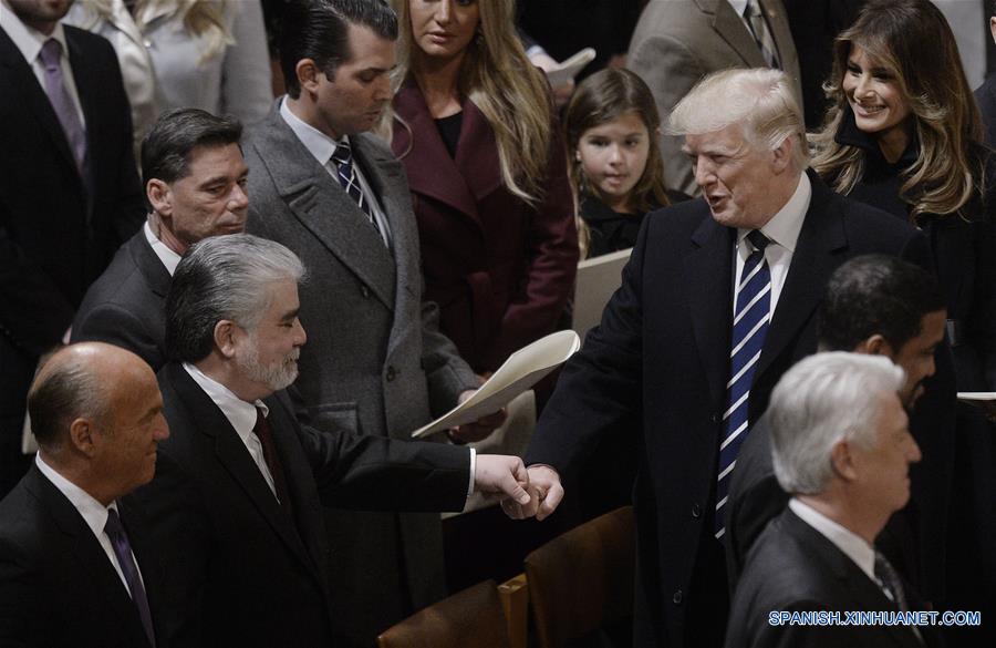 El presidente de Estados Unidos de América, Donald Trump (2-d), asiste a un servicio religioso en la Catedral Nacional, en Washington D.C., Estados Unidos de América, el 21 de enero de 2017. El presidente estadounidese, Donald Trump, comenzó su primera jornada completa en funciones en un servicio religioso, el último ritual de la transición antes de dedicarse de lleno a las tareas gubernamentales, de acuerdo con inforación de la prensa local. (Xinhua/Olivier Douliery/CNP/ZUMAPRESS)
